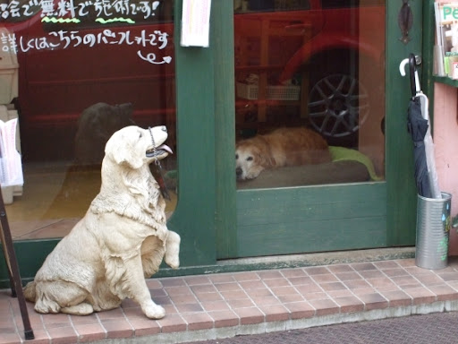 話說店狗有時候會跑出來趴在店門口,可只要有人經過就會爬起來讓路,大概以為走過來的是客人吧~